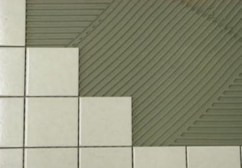 1、用齒型刮板將攪拌好的粘結(jié)劑涂抹于工作面上,使之均勻分布,并成一條條齒狀。每次涂布面積約1m2(視天氣溫度而定),然后在晾置時間內(nèi)將被粘磚板揉壓于工作面上即可。